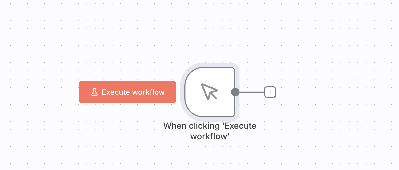 Add a trigger — For testing, add a Manual Trigger node so you can trigger the workflow manually by clicking the Execute Workflow button.