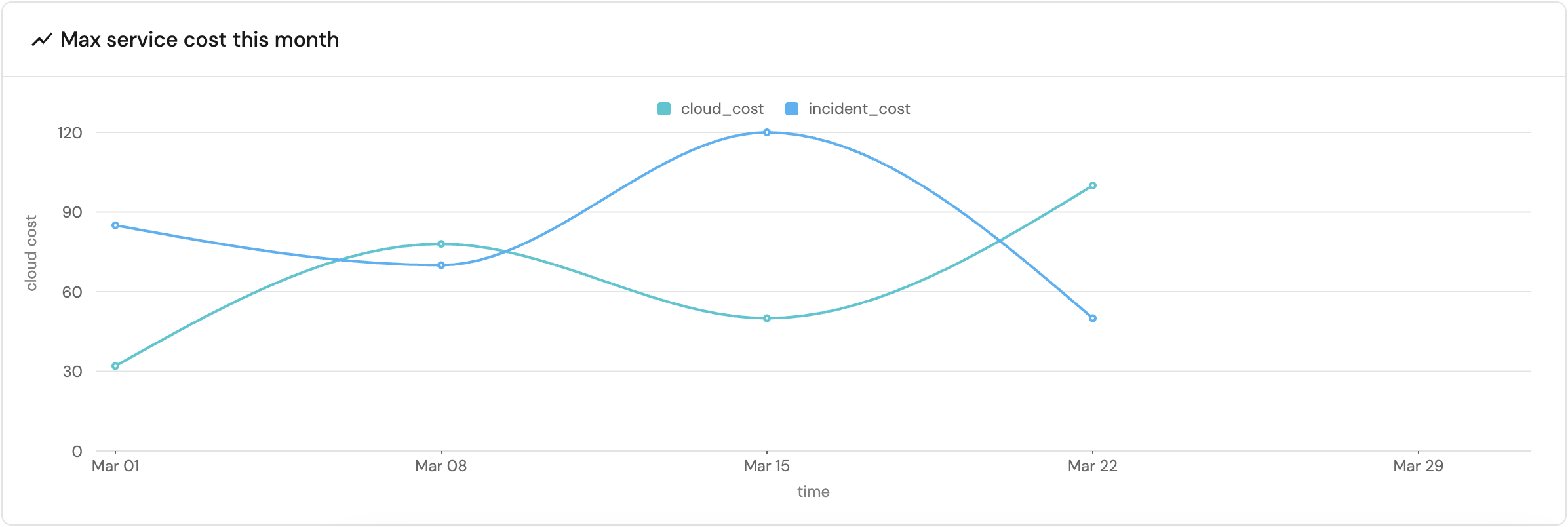 For example, here is a line chart displaying the maximum cost of all services over the span of a month, in weekly intervals: