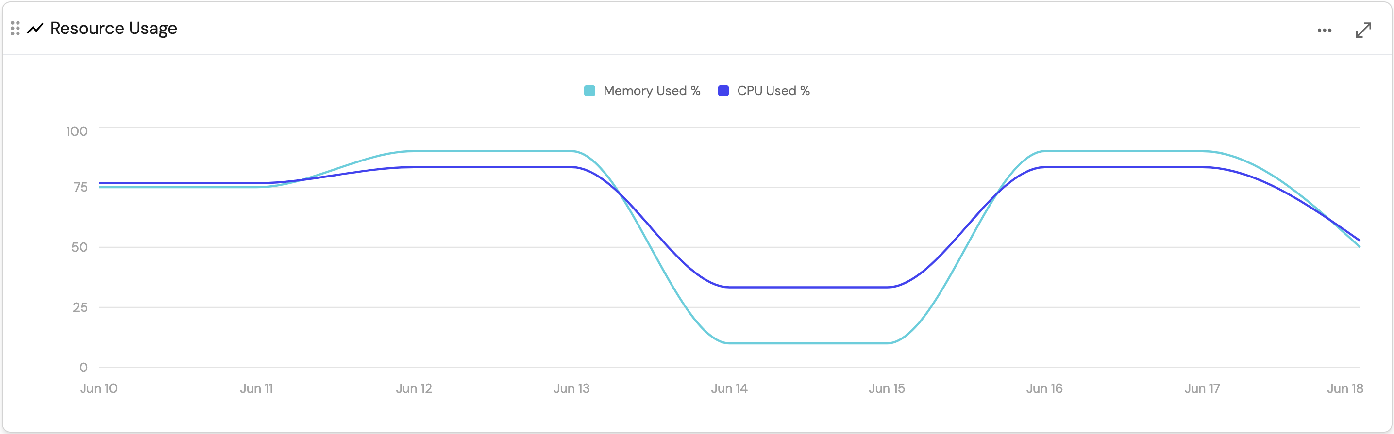 For example, here is a line chart displaying a service's resource usage over the span of a week, in daily intervals: