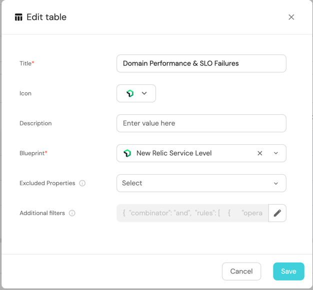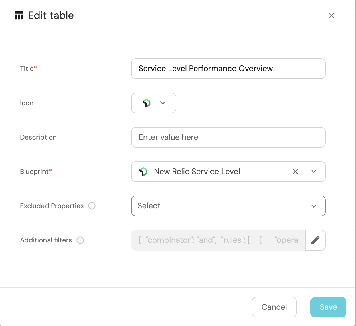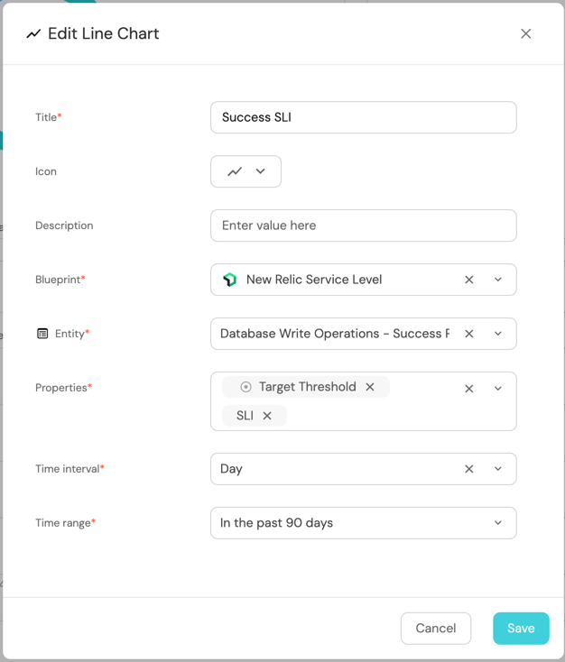 In this setup, we will create or update the New Relic Service Level blueprint.