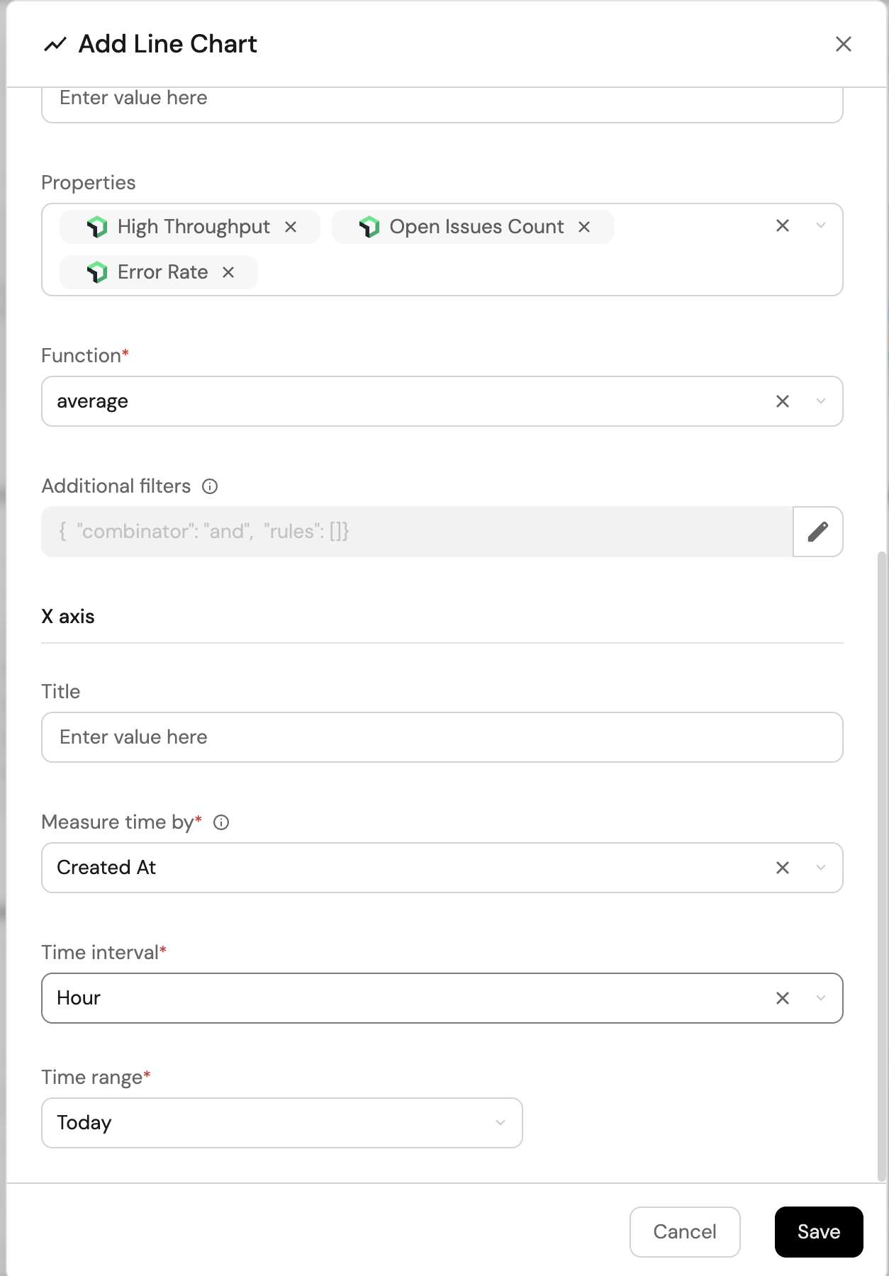 6. Choose High Throughput, Open Issues Count, Error Rate as the Y axis Property.
