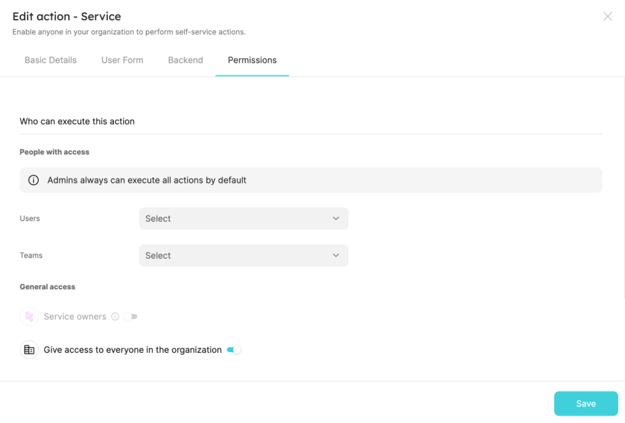 When creating/editing self-service actions, you can set permissions for who can trigger or approve an action.