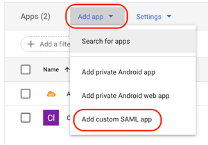 1. In the Google Admin Console, in the sidebar menu, navigate to Apps -> Web and mobile apps: