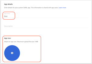 1. App name: Insert a name of your choice for the Port app, like Port.